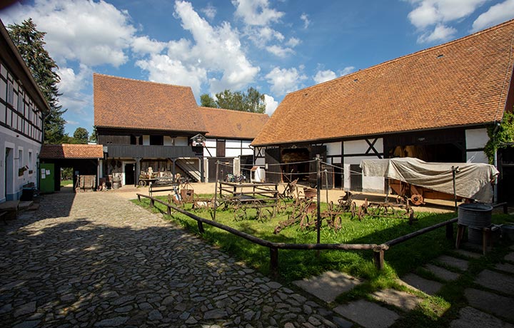 Entdecken Sie eine fast ausgestorbene Welt: der Vierseithof des Dorfmuseums Markersdorf lädt dazu ein. Während im Wohnhaus eine Tür in die Vergangenheit der bäuerlichen Wohnkultur geöffnet wird, machen Stall, Waschhaus und Tenne deutlich, wie schwer unsere Vorfahren ihren Lebensunterhalt mit Dreschflegel, Waschbrett und Pflug erarbeiten mussten. Brunnenhaus und Backhaus ergänzt um Bauern- und Kräutergarten zeigen, dass Selbstversorgung an erster Stelle stand. Die tierischen Bewohner des Hofes vervollständigen mit ihrem Blöken, Grunzen und Wiehern das Bild. Die originalgetreu eingerichtete Alte Dorfschule lässt erahnen, dass auch die Kleinsten bereits ihren Anteil leisteten und fernab von Computer und Co. trotzdem etwas fürs Leben lernten.