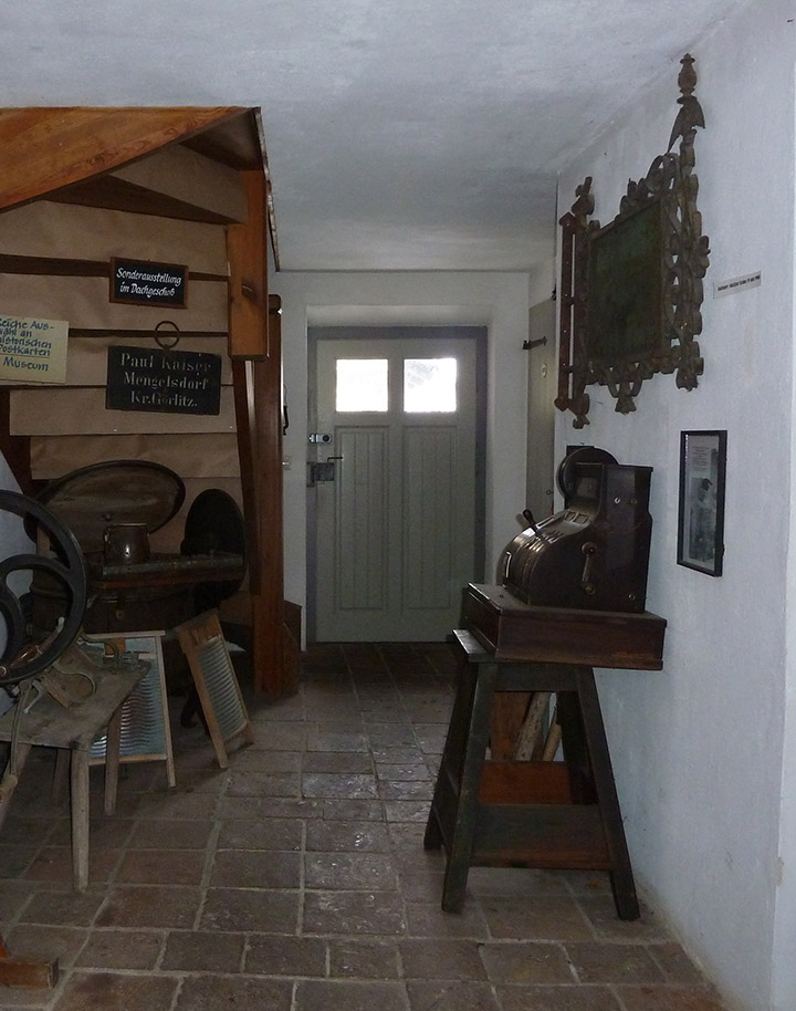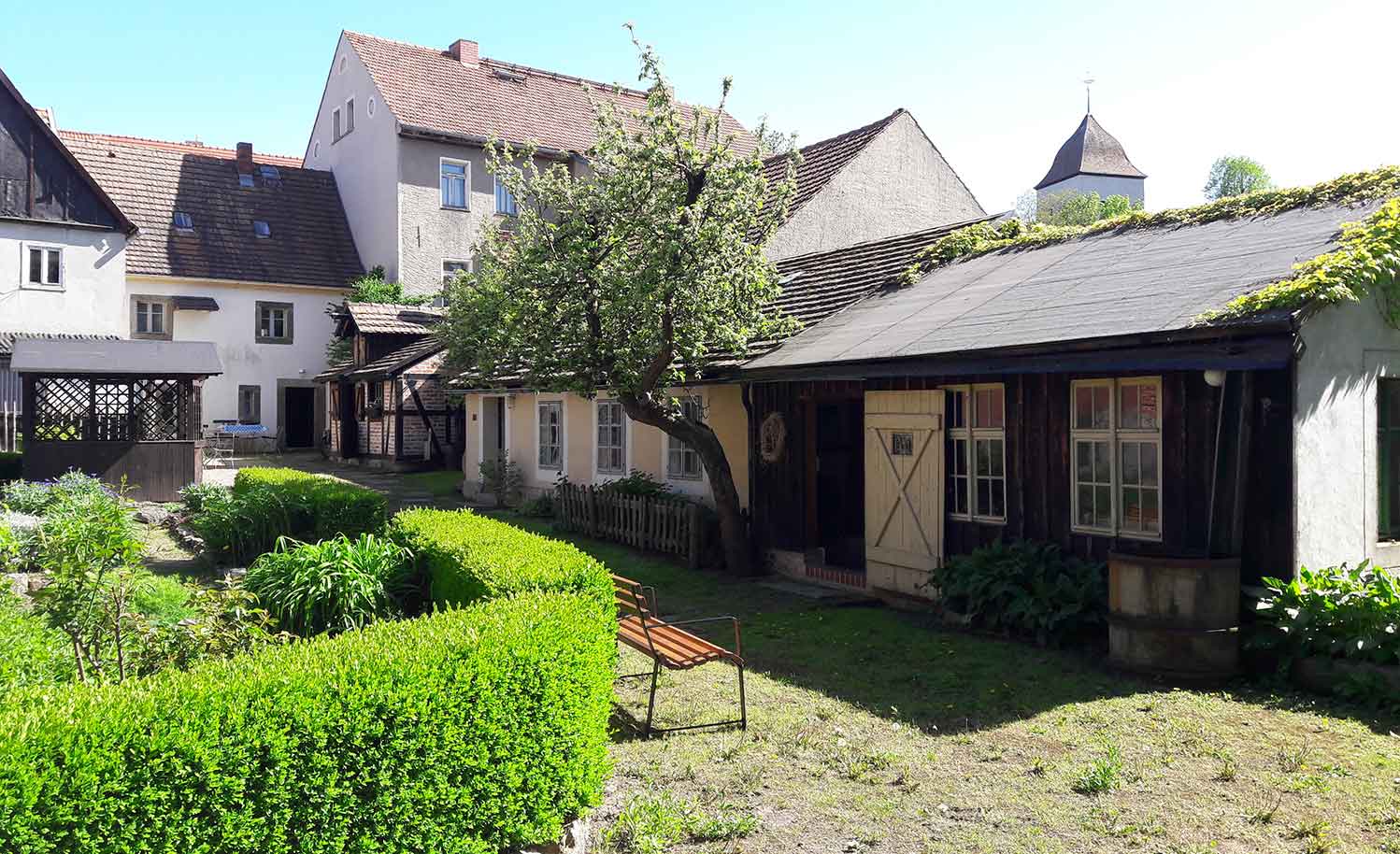 In dem kleinen, original wieder aufgebauten Haus mit seinem Hof und Garten kann in das Leben der so genannten „Ackerbürger“ um 1900 Einblick genommen werden. Neben ihrer Arbeit in der Fabrik, in Handel und Gewerbe, betrieben die Einwohner Reichenbachs zur Sicherung ihres Lebensunterhaltes eine bescheidene Landwirtschaft. Zu jedem innerstädtischen Grundstück gehörte auch ein kleiner Acker vor der Stadt. Die rekonstruierte Inneneinrichtung des Wohnhauses ist ein Spiegel kleinstädtischer Lebensweise. Die engen Räume lassen die einfachen Verhältnisse ihrer einstigen Bewohner wieder spürbar werden. Bei der Einrichtung wurde sehr viel Wert auf Detailtreue gelegt, so dass sich für viele Besucher so manches interessante Ausstellungsobjekt vielleicht auch mit persönlichen Erinnerungen verknüpfen lässt. Das Obergeschoss steht für Sonderausstellungen zur Verfügung. Auch die Hofgebäude sollten nicht außer Acht gelassen werden, besonders der Werkstatt eines Glasdrückers sollte besondere Aufmerksamkeit zuteil werden. In einem Ofen wurde das Glas erhitzt und in zähflüssigem Zustand mit Zangen in Formen gepresst. Aus farbigem Stangenglas entstanden so einst Plaketten, Knöpfe, Rückstrahler und andere gläserne Kleinteile. Der kleine Garten mit Blumen, Gemüse und Kräutern ist als typische Anlage eines Ackerbürgergartens gestaltet und enthält eine Auswahl an Bienenweidepflanzen.
